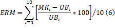 Para determinar la calidad de las soluciones, el Error Relativo Medio (ERM) es definido como: