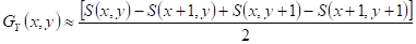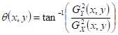 (4)Lo anterior se obtiene de promediar las diferencias finitas sobre un cuadrado de dimensión 2 x 2. Seguidamente es necesario obtener la magnitud y el ángulo del arreglo