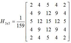 (1)Se puede hacer uso de un filtro Gaussiano, por ejemplo de tamaño 5x5 con una desviación estándar de 1.4, para convolucionar a la imagen bajo análisis. El filtro mencionado puede ser implementado con el siguiente vector (forma aproximada):