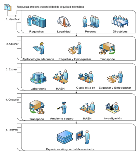 Palabras clave: incidente, evidencia digital, seguridad informática, ciberdelito, informática forense.