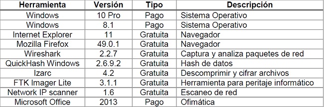 En esta fase, se realizó el estudio de la evidencia mediante herramientas de software elegidas de forma tal que permitan realizar el volcado de memoria, clonación bit a bit de los datos, función de verificación y comparación. Para el caso de estudio se analizaron computadores de escritorio. Las herramientas de software, la versión, el tipo de licencia así como una descripción para la cual fueron utilizadas se muestran en la Tabla 2.