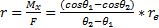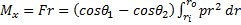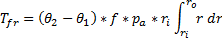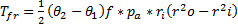 La fuerza de accionamiento F, la presión local de contacto p, el par de torsión de fricción Tfr, los ángulos inicial y final de la pastilla θ1 y θ2 están dados por: (R. Budynas, N. Keith, 2011) ( Cornejo C., 2010).