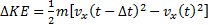 = Cambio de la energía cinética de traslación, [J].