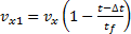Se toma como uniforme la desaceleración, y el cambio de velocidad es una función lineal de tiempo, es decir: