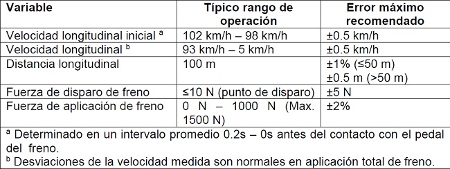 Las variables, rangos de operación y errores máximos recomendados están en la Tabla 2.
