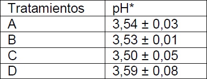 Como se observa en la Tabla 6, con excepción del tratamiento C, todos los tratamientos cumplieron con el porcentaje de acidez para néctar (0,4-0,6%) establecido según Cañizares et al. (2009).