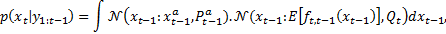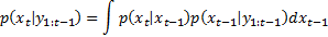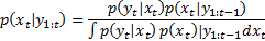 Forecast step. The forecast step is given by the computation of the predictive pdf in Equation 10.