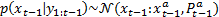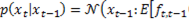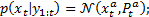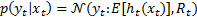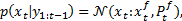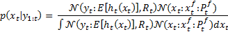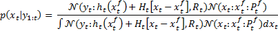 (16)For the extended Kalman filter, the prior is approximated by a Gaussian distribution which is characterized by the mean (Equation 14) and the covariance (Equation 15). The likelihood pdf is obtained from Equation 2, by considering that the pdf in Equation 17 is Gaussian.