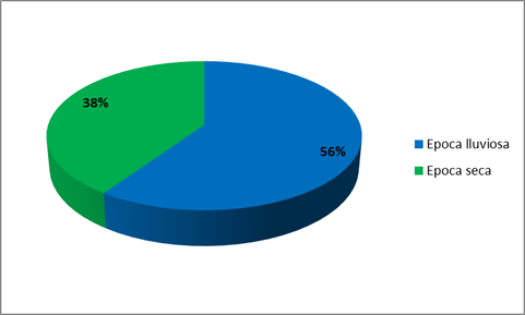 En la época lluviosa se obtuvieron un total de 148 especímenes EPT y 100 en la época seca, lo cual da una abundancia relativa de 56% en lluvias, categorizándola como buena y 38% en la estación seca, categorizándola como regular (Carrera et. al., 2001).