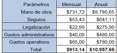 Las variables detalladas en la Tabla 4, son consideradas para el rubro de legalización, como parte de los costos fijos.