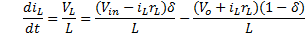 is obtained the dynamic behavior of Buck-Boost converter described by Equation 5 and Equation 6.