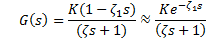 (9)For the design of IMC, the FOPDT approach (Equation 8) is used; it presents a delay in the model of system, and generates a non-invertible controller. According to what was mentioned in Equation 9, it’s necessary to separate the non-invertible part of the model. The delay is separated from the transfer function of the system FOPDT and origins a transfer function as shown in Equation 10. The new transfer function of system without delay is shown in Equation 11