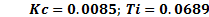For tuning the PI controller (Equation 14), the FOPDT model of system (Equation 8) was used. The tuning method of Dahlin (Smith and Corripio, 1997) was considered.