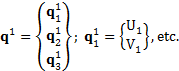 Componentes de desplazamiento en cada nodo, en los ejes u y v.