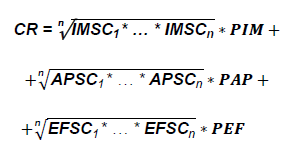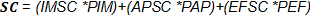 IMSC, APSC and EFSC represent the implementation measures, application and effect of the respectively sub-criterion; and, PIM, PAP and PEF represent the weighting values assigned to the implementation level, application and effect respectively.