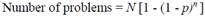 As per Formula 1 the proportion of problems discovered depends on the problem discovery rate (p). To estimate this parameter, the quotient between the number of unique problems and the number of problem occurrences observed by participant is computed. As an example, consider the data in Table 1, in which there are 17 participants, 8 problems, and 28 problem observations (cells containing an “x”), with these values p is 0.21 = 28/(8*17).