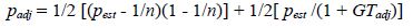 In (Lewis, 2001) several adjustment techniques are reviewed and synthesized into one method, the author regarded as the most accurate, to adjust the estimate of p. The formula to adjust the value of the p, is Formula 4:
