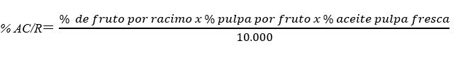 El porcentaje de extracción de aceite por racimo se determinó mediante la ecuación 2: