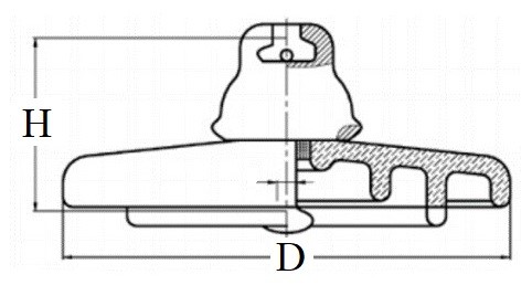 El aislador tiene un diámetro D de 340 mm, un espaciamiento H de 195 mm, una distancia de fuga de 550 mm. El voltaje de perforación del aislamiento es de 130 kV. El nivel de aislamiento de frecuencia industrial en seco es de 90 kV. El nivel de aislamiento de frecuencia industrial en mojado es de 55 kV y el nivel de aislamiento ante impulso CFO positivo y negativo es de 130 kV.