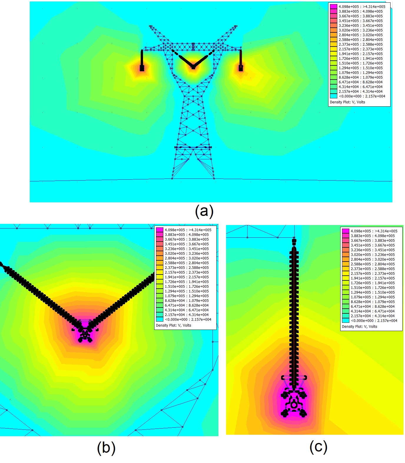 El modelo implementado puede utilizarse para realizar estimaciones de voltajes y campos eléctricos en todo el espacio de simulación y determinar posibles optimizaciones en sus diseños, al realizar modificaciones en los materiales y geometrías, que luego permitan observar cambios en las distribuciones de voltajes, y los campos eléctricos en los aislamientos y cercanías de una torre de transmisión.