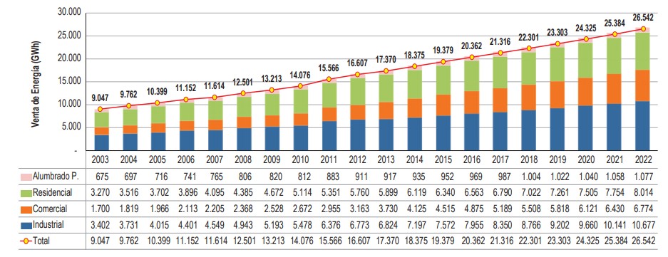 Las líneas de transmisión de alto voltaje permiten transportar la energía eléctrica a grandes distancias, de una manera eficiente y segura, desde los centros de generación hacia los centros de consumo. En los últimos años, con los avances tecnológicos, la incorporación de grandes cargas al sistema y el cambio de la matriz productiva, el Ecuador ha tenido un crecimiento tendencial del consumo de energía eléctrica. Según los estudios realizados por la Agencia de Regulación y Control de la Electricidad del Ecuador (Arconel), el crecimiento promedio del consumo de energía en el país es del 5 % anual, como se presenta en la figura 1 (Arconel, 2013), siendo esta una razón para la construcción de uno de los proyectos hidroeléctricos más grandes en el país: Coca Codo Sinclair, con una capacidad instalada de 1500 MW.