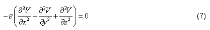 La aplicación de la ley de Gauss lleva a la ecuación (5) a constituirse en una ecuación diferencial parcial de segundo orden, dada en ecuación (6) o ecuación (7):
