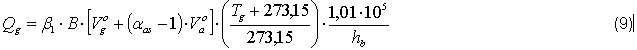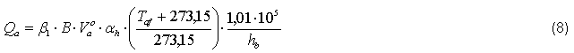 - presión barométrica del aire, Pa; Vº. - volumen total teórico de gases, m.N/kg;