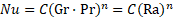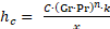[Ec.8]Donde C y n son constantes que dentro del intervalo 3.2 * 105 < Gr < 107, correspondiente a un flujo turbulento (condición predominante dentro de la torre de destilación); Dunkle (1961) utiliza los valores: C = 0.075 y n = 1/3.