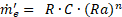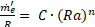 [Ec.18]Donde m'0/R = Y, C = a, Ra = X, n = b. Aplicando el logaritmo en ambos lados de Ec.18 se produce Ec.19.