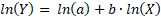 [Ec.20]Donde y' = ln(Y), a' = ln(a), b' = b, x' = ln(X).
