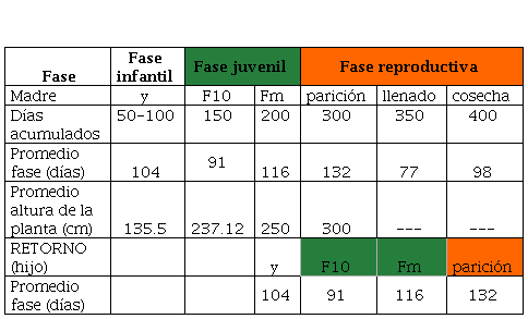 Tabla 1. Representación del desarrollo fenológico por fase de una planta
