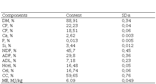 The chemical characterization of feeds is one of the most important aspects for the successful development of livestock production and complements the in vitro and in vivo results. Thus, these chemical studies are essential to formulate diets considering the animal species, productive category, physiological state, and productive purpose (Betancourt et al., 2017), which will allow taking advantage of the available raw materials and lowering the production costs associated with feeding (Martínez et al, 2021).
