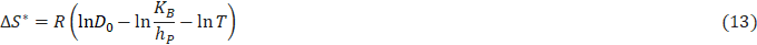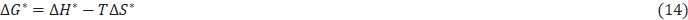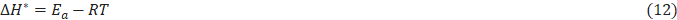 Conociendo la energía de activación, se determinó la entalpía diferencial (ecuación 12), la entropía diferencial (ecuación 13) y la energía libre de Gibbs (ecuación 14) (Jideani & Mpotokwana 2009) mediante las siguientes ecuaciones: