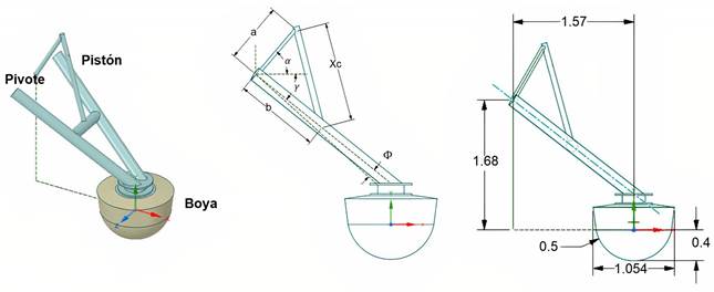 El dispositivo mecánicamente opera bajo las siguientes condiciones físicas y mecánicas (se toma como origen de coordenadas el centro geométrico de la boya):