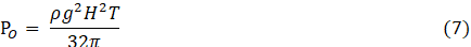 La potencia (Po), por metro de columna de agua, existente en los estados de mar estudiados se calculan utilizando la ecuación 6 (Perez, 2018). La potencia mecánica en el brazo del WEC en respuesta, es calculado aplicando la ecuación 7, considerando el valor del momento (M) ejercido respecto al punto pivote y la velocidad angular del brazo analizada a partir del desplazamiento (Fernández et al., 2018).