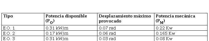 La tabla 2 presenta la potencia disponible de las olas en los estados E.O.1, E.O.2 y E.O.3 y la potencia mecánica del brazo del WEC provocada por dichos estados.