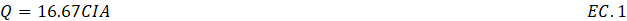 , C es el coeficiente adimensional de escurrimiento, I es la intensidad máxima para el tiempo de concentración de la cuenca en mm/min y A es el área de aporte en