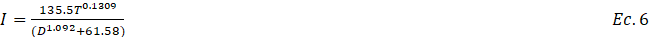 • D: Duración de la tormenta en minutos (con la adopción del modelo racional y cumpliendo uno de sus principios D=120 min)