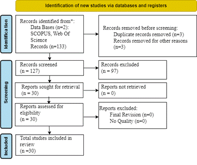 In the final phase, 30 new studies were included in the review. Fig. 2 provides a graphical representation of the article selection process.