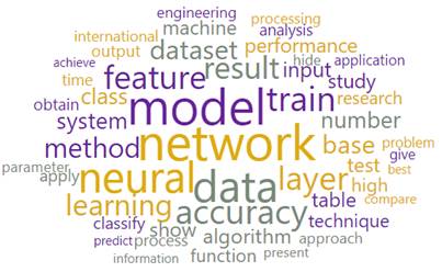 Fig. 3 emphasizes the most common words found in the selected studies, notably featuring terms like neural network, model, data, train, accuracy and machine learning. On the other hand, less prevalent terms include predict, analysis and processing.