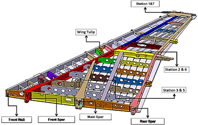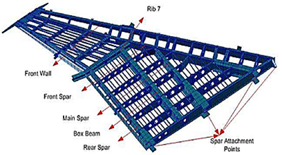 An aircraft wing is a semi-monocoque structure designed to resist and transmit aerodynamic forces to the airframe [16]. The wing is statically indeterminate due to redundant structural members. Therefore, resulting structural response of each member depend on the stiffness of adjacent members [17].