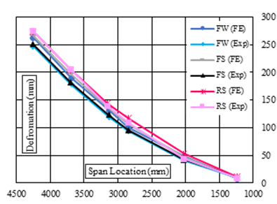 Fig. 8 shows the comparison of deformation of along Front Wall, Front Spar and rear spar for FE analysis and experimental results. Deformation field of wing available from both studies corelate with each other.