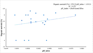 Photogrammetric flight generated a high-quality orthophoto with a resolution of 1.6 cm per pixel. Eight RGB spectral indices were calculated, of which only pH_index showed a strong correlation with organic matter, with a coefficient of determination R2=0.54