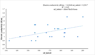 On the other hand, the sal_index6 and presented a moderate correlation with electrical conductivity (EC), with a coefficient of determination R2=0.42.