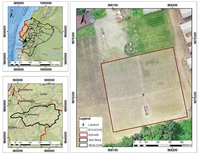 This study was carried out on a plot of 0.38 hectares, located in the Lodana parish of the Santa Ana canton belonging to the province of Manabí. Its geographical location is 80°23'13.60"W, 1°10'25.51"S [Fig. 1]. The average temperature is 27.6°C and its average annual rainfall is 83.60 mm [23].