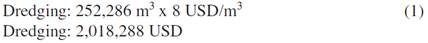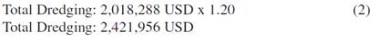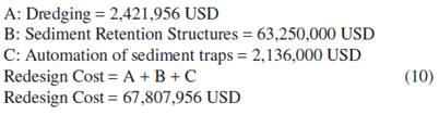 [Eq.10]Finally, due to any inconvenience, such as an additional technical study, supplementary work, external structure to deposit the collected sediments, or other intervention, it is projected that 5% of the total will be projected due to any unforeseen event as show the Eq. 11.
