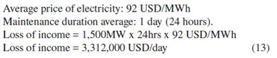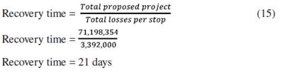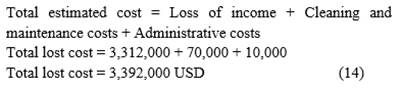 [Eq. 11]Once the necessary investment was defined, the estimated loss due to inactivity of the hydropower plant was projected, which contained loss of income, cleaning and maintenance costs, and administrative costs, it represents (Eq. 12):