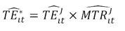 where the first term on the right-hand side is firm TE with respect to the group-j frontier represented by equation (3). The second term is the MTR for each firm in the jth group: