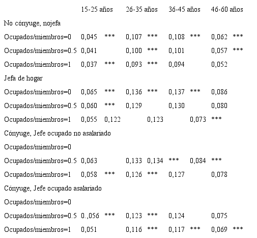 Nota: el gráfico ilustra los resultados de las diferencias de probabilidad para la proporción de ocupados sobre miembros igual a .5. Se observa un patrón de comportamiento similar para los demás niveles de proporción de ocupados sobre miembros.