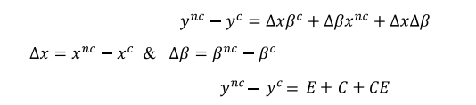 Donde y es la incidencia de la informalidad laboral, x el vector de variables explicativas y β los coeficientes. Los grupos definidos son los trabajadores costureros (C) y el resto de los ocupados de la economía (NC). E es el efecto dotación, C es el efecto coeficiente y CE es el efecto interacción.
